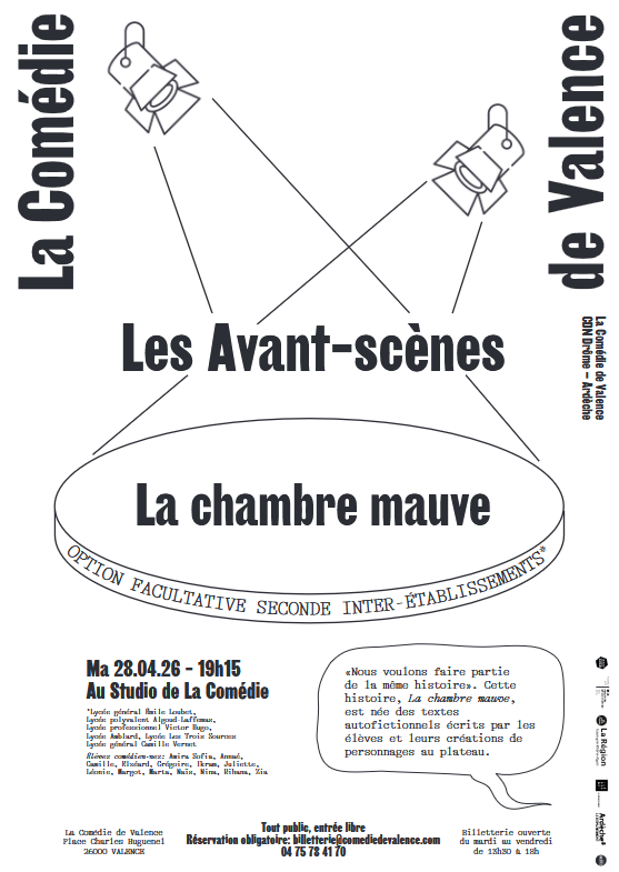 Mardi 28 Avril à 19h15 - restitution des élèves de 2nde : "La chambre mauve"