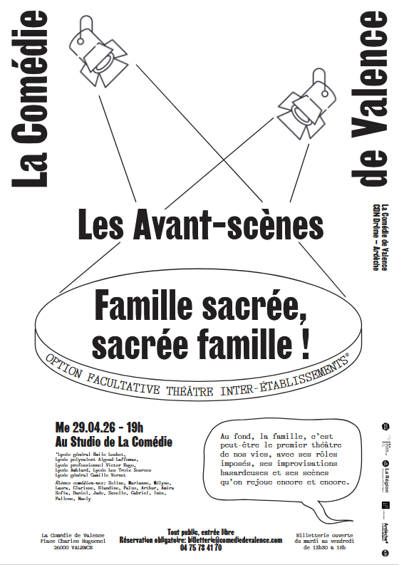Mercredi 29 avril à 19h - restitution des élèves de 1ère : "Famille sacrée, sacrée famille !"