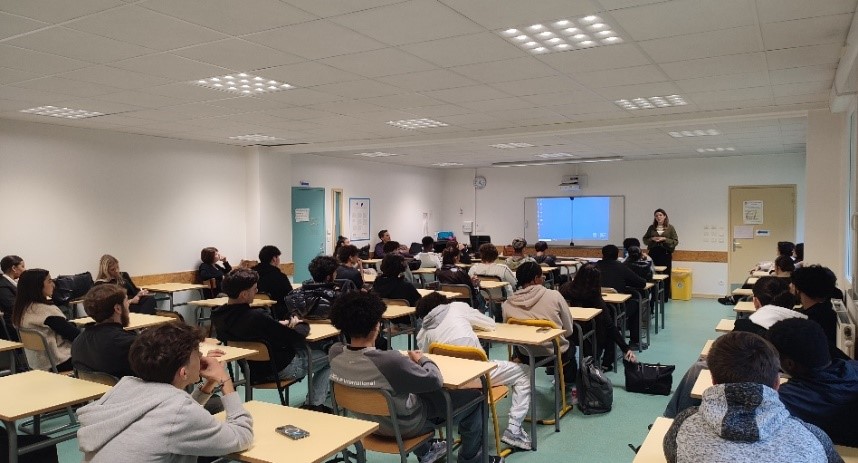 Les jeudis 9 et 16 octobre 2025, nos élèves du groupe Scènes de justice, de 2°8, de Terminale MELEC et des étudiants de BTS NDRC et de BTS SAM. ont participé à une rencontre animée par Julie Centelles, conseillère conjugale et familiale de l’association ACFA Couples et familles, autour de la prévention des violences conjugales.