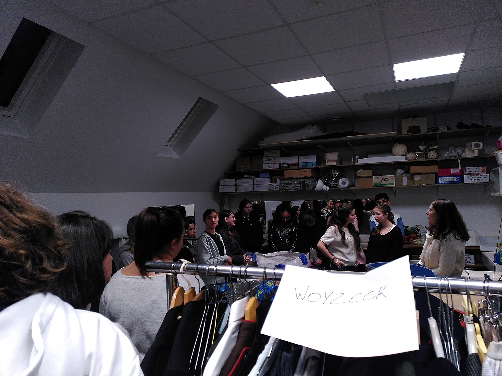 Ils ont eu également accès à une dernière pièce destinée à la confection des costumes, leur rangement, leur réutilisation pour les créations travaillées à la Comédie. On aperçoit des tests de costumes pour la prochaine création à la Comédie Woyzeck, que les élèves iront voir plus tard dans l’année.