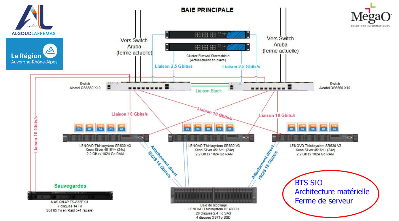 La ferme de serveur est dimensionnée pour accueillir les travaux d'environ 75 étudiants qui pourront travailler sur des environnements virtualisés (10 machines virtuelles par étudiant en même temps)